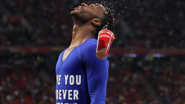 现场的一部分匈牙利球迷在第二个丢球后恼羞成怒,开始向现场投掷杂物,甚至还有人将点燃的焰火扔到了角旗附近。结果英格兰这边的赖斯在跟队友庆祝进球时捡起地上的塑料纸杯,向主队球迷做出仰头畅饮的动作回应。而英格兰的进攻也远没有就此停止,第二个进球仅仅6分钟后,卢克·肖在左侧开出角球,人群中的马圭尔精准地预判到落点后甩头攻门得手,将比分扩大为3比0。终场前3分钟,格里利什在禁区右侧拿球后并未急于施射,而是回敲弧顶附近,赖斯及时跟上一脚远射破门,将比分锁定为4比0。